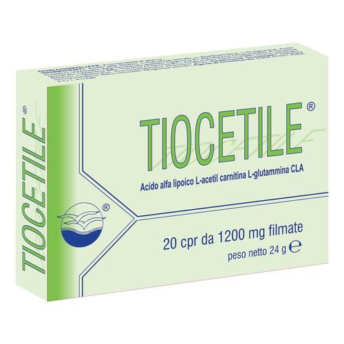 TIOCETILE Acido alfa lipoico L-acetil carnitina L-glutammina CLA Integratore alimentare, costituito da una associazione di Acido alfa lipoico (acido Tiottico), L-carnitina, L- acetil carnitina, L-glutammina, Acido linoleico coniugato (CLA), Acido folico, Cromo, Vitamina E, Selenio e vitamine del gruppo B. La vitamina B contribuisce alla normale funzione psicologica ed al normale funzionamento del sistema nervoso. La vitamina E contribuisce alla protezione delle cellule dallo stress ossidativo. Avvertenze Non eccedere la dose giornaliera consigliata. Tenere fuori dalla portata dei bambini di età inferiore ai 3 anni. Gli integratori a...