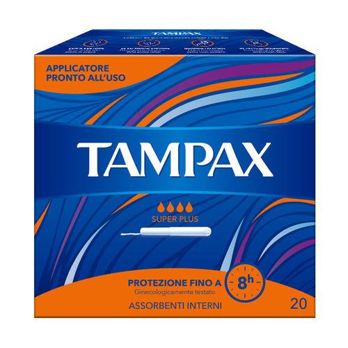 TAMPAX BLUE BOX Super PlusDescrizione Tampax Blue Box è un tampone con applicatore in cartone, presa antiscivolo e punta arrotondata per un facile e pratico inserimento. Per flussi molto abbondanti. Per una protezione discreta e confortevole durante tutto il ciclo mestruale. Pratici e facili da indossare grazie al loro applicatore. Formato Confezione da 20 assorbenti. Cod. 83738996