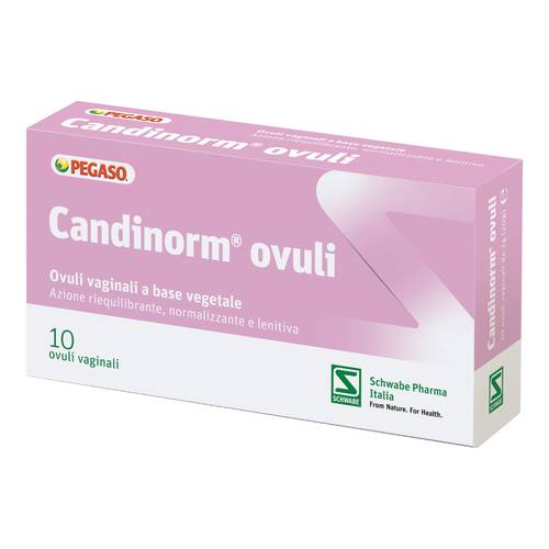 PEGASO Candinorm ovuliDescrizione Candinorm ovuli grazie all’associazione sinergica di sostanze funzionali specifiche promuove il riequilibrio dell’ambiente vaginale, favorendo il ripristino della microflora batterica utile in caso di flogosi dell’apparato genitale femminile anche associata a micosi. Candinorm ovuli contiene acido lattico e galatto-oligosaccaridi (GOS) ad attività prebiotica che si depositano sulla mucosa vaginale favorendo il ripristino del pH fisiologico vaginale e un corretto sviluppo della flora batterica lactobacillare. L’estratto di aloe vera conferisce azione lenitiva ed idratante della mucosa vaginale. L’acido ...